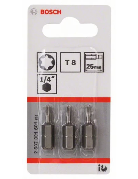 Pack 3 Embouts De Vissage Torx Extra-dure T8 Longueur 25mm | 2607001601 – Bosch | IFD Outillage