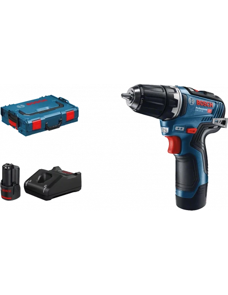 • La GSR 12V-35 Professional dispose aussi d’un engrenage 2 vitesses, d’un mandrin Autolock, d’un clip de ceinture, d’un porte-embout, d’un indicateur de niveau de charge, d’une Electronic Cell Protection, d’un éclairage LED, d’une batterie Lithium-Ion, d’une réversibilité droite/gauche et d’une présélection de vitesse.