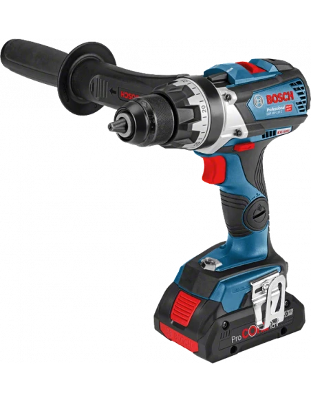 • La GSR 18V-110 C Professional dispose également d’un engrenage 2 vitesses, d’un mandrin Autolock, du KickBack Control, de l’Electronic Motor Protection, d’une poignée, d’une batterie Lithium-Ion et d’un embrayage de précision.